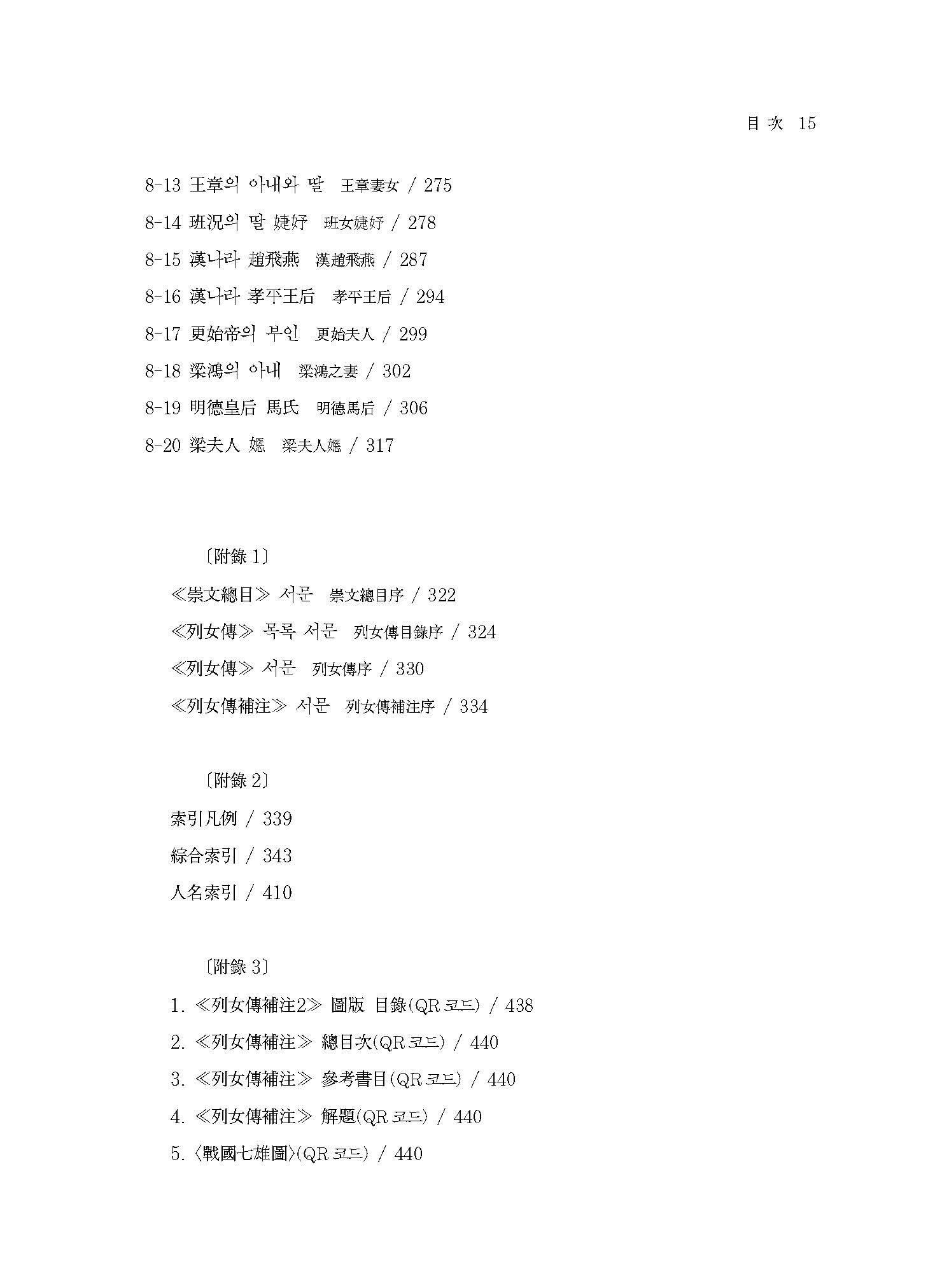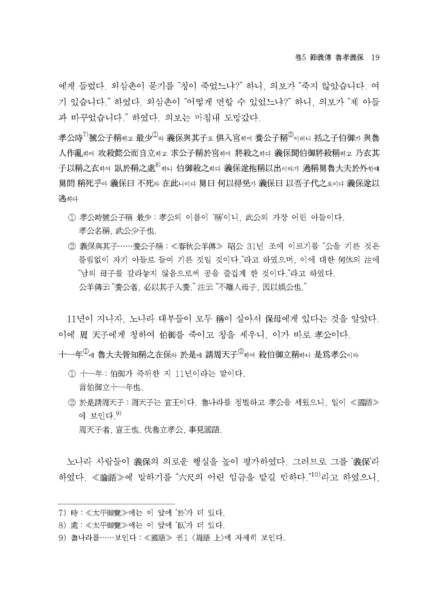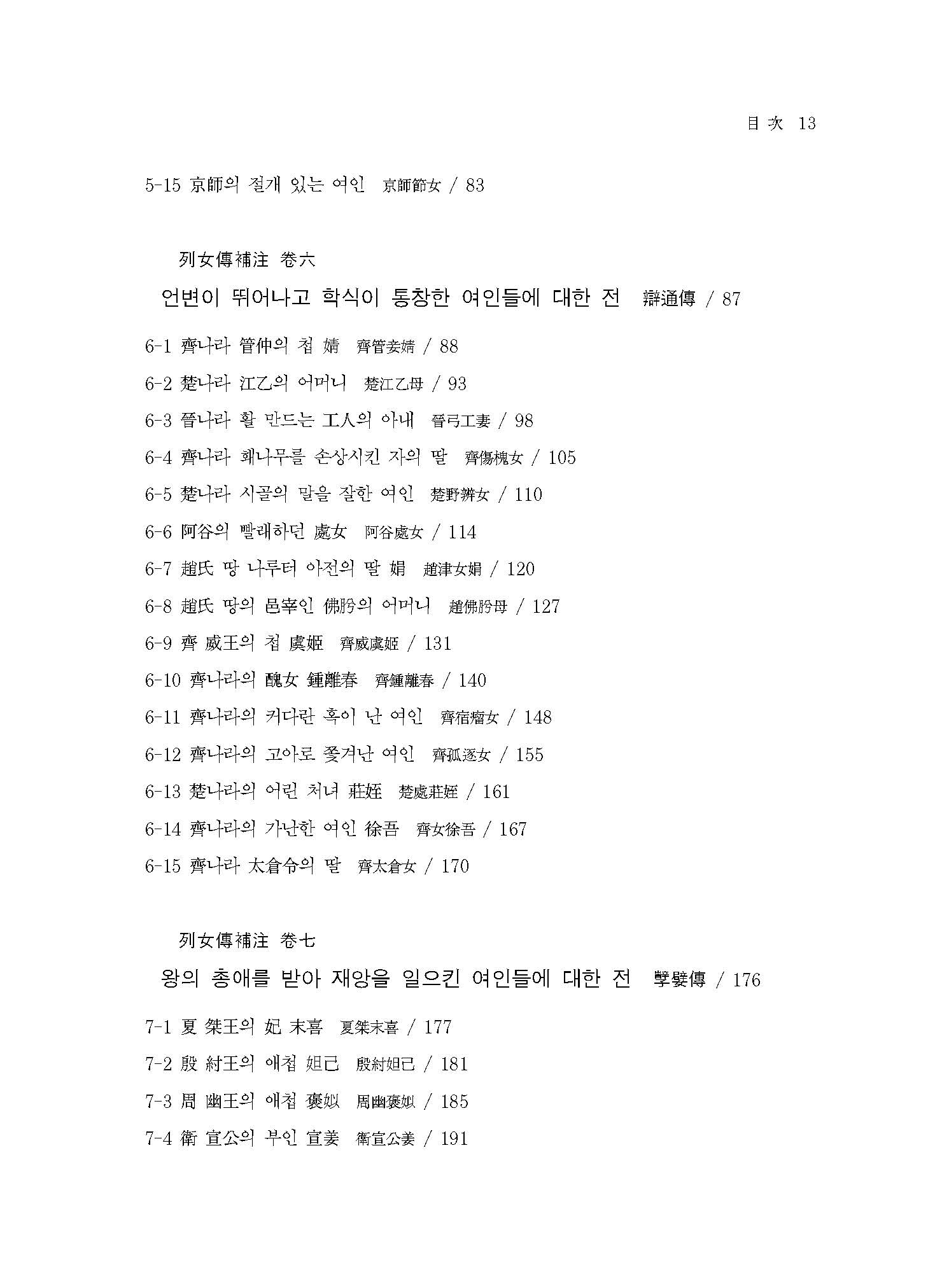 본서는 ≪열녀전≫을 정확하게 번역하는 데 목적을 두는 것에서 한 걸음 더 나아가 ≪열녀전≫의 정본화定本化에도 심혈을 기울였다. 이것이 신뢰할만한 교정과 주석 작업이 이루어진 ≪열녀전보주≫를 저본으로 선택한 이유이고, 또 ≪열녀전교주≫와 ≪열녀전집주≫의 주석도 적극적으로 반영하여 교감 작업에 공을 들인 이유이기도 하다.