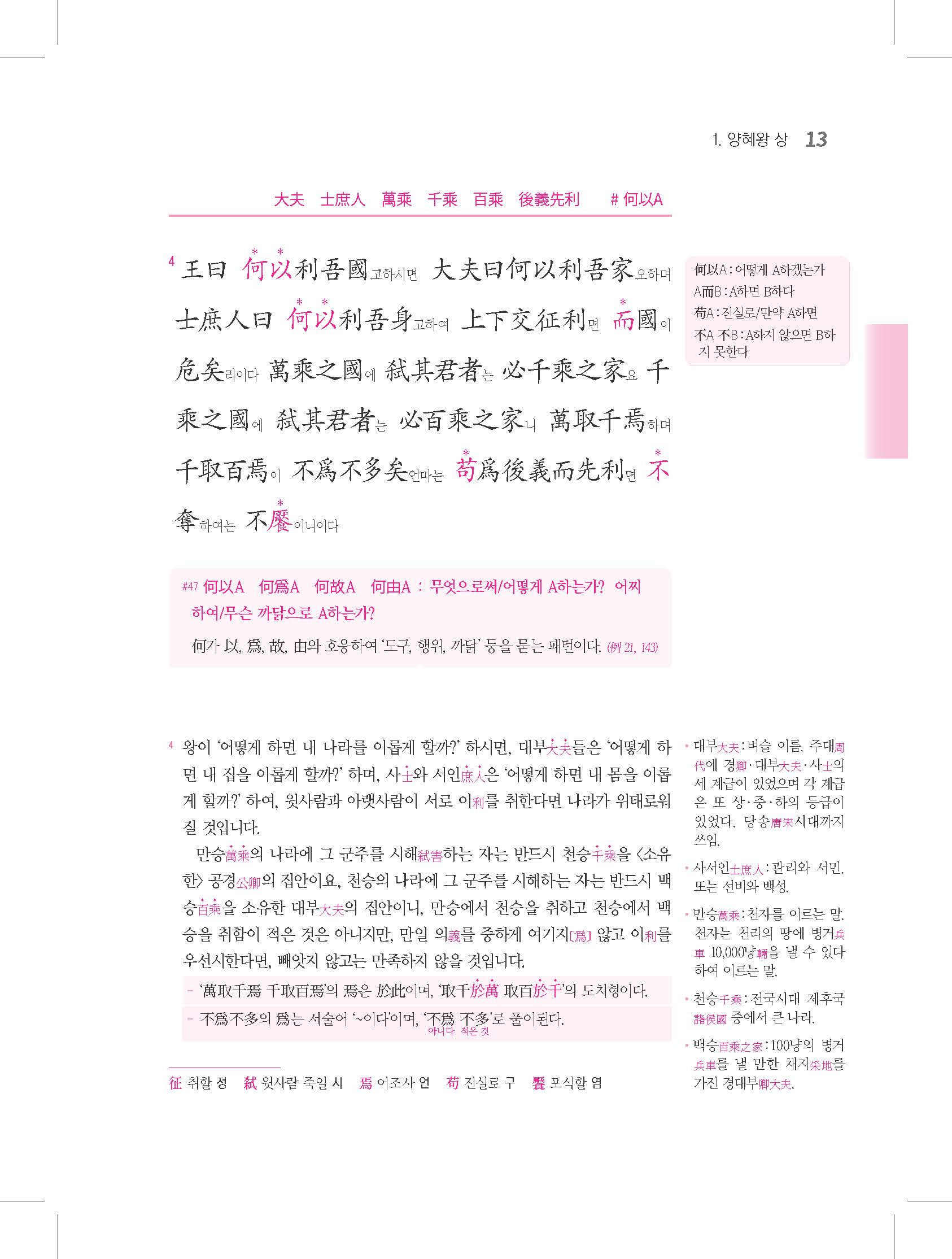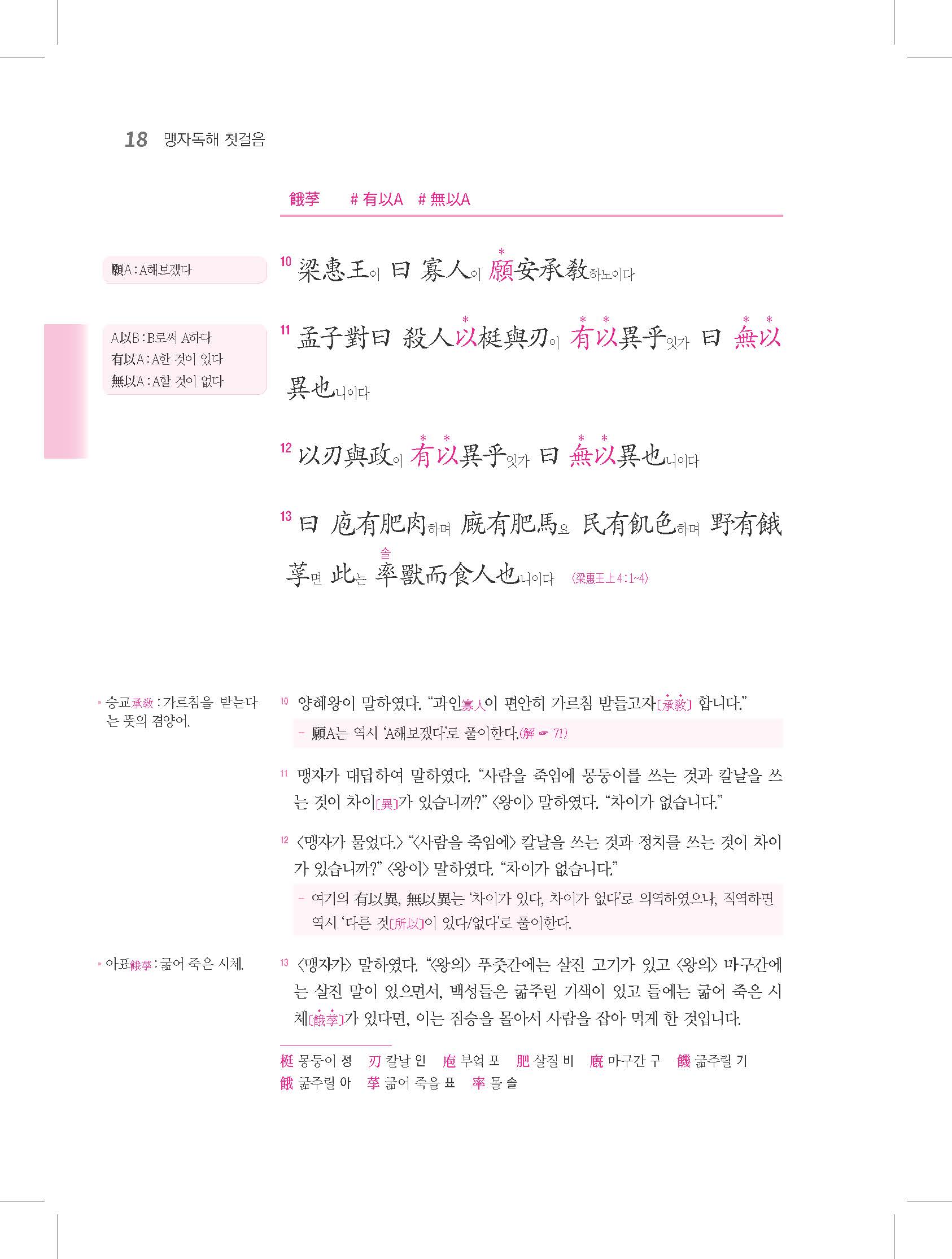 맹자 핵심 문장 학습으로 한문문리文理 단기 터득