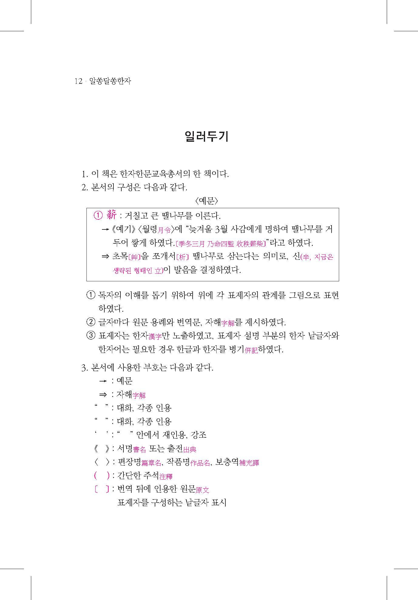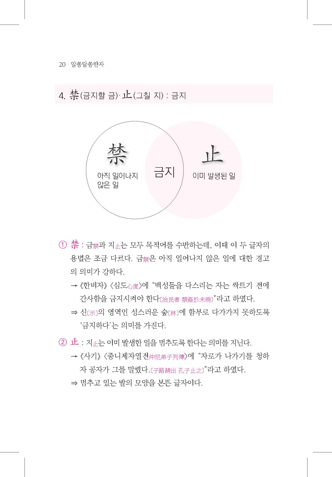 『알쏭달쏭 한자』는 한문 독해 과정에서 자주 혼동되는 동의어·근의어 한자 153종을 선별하여 그 의미 변천과 맥락적 차이를 체계적으로 해설한 연구서입니다. 한문은 실사와 허사로 나뉘며, 특히 실사는 문장의 의미를 파악하는 핵심 요소입니다. 그러나 동일한 글자라도 시대나 문맥에 따라 다른 의미로 쓰이거나, 같은 의미 범주 안에서도 세부적으로 구분되는 경우가 많습니다. 이러한 미묘한 차이를 도식화와 예문을 통해 시각적으로 제시하여 고문 독해의 정확성을 높이고 학습자와 연구자 모두가 쉽게 이해할 수 있도록 구성되었습니다. 한문 교육 현장과 학술 연구, 강의 자료로 활용도가 높은 실질적 참고서가 될 것입니다.